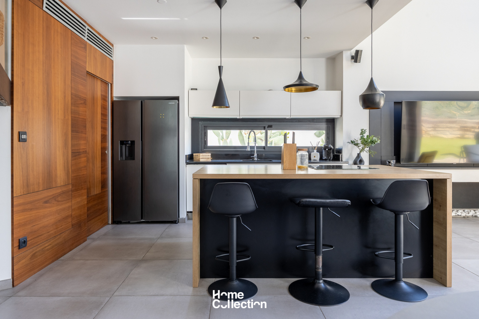 Au rez-de-chaussée, vous découvrirez une entrée accueillante desservant une suite parentale de 23 m² avec sa salle d’eau, ainsi qu’un vaste séjour avec cuisine ouverte de 41 m². Cette pièce de vie, baignée de lumière grâce à ses larges baies vitrées et sa triple exposition, est sublimée par une très belle hauteur sous plafond et un élégant escalier contemporain. Une baunderie , un dressing et des wc complètent ce niveau.