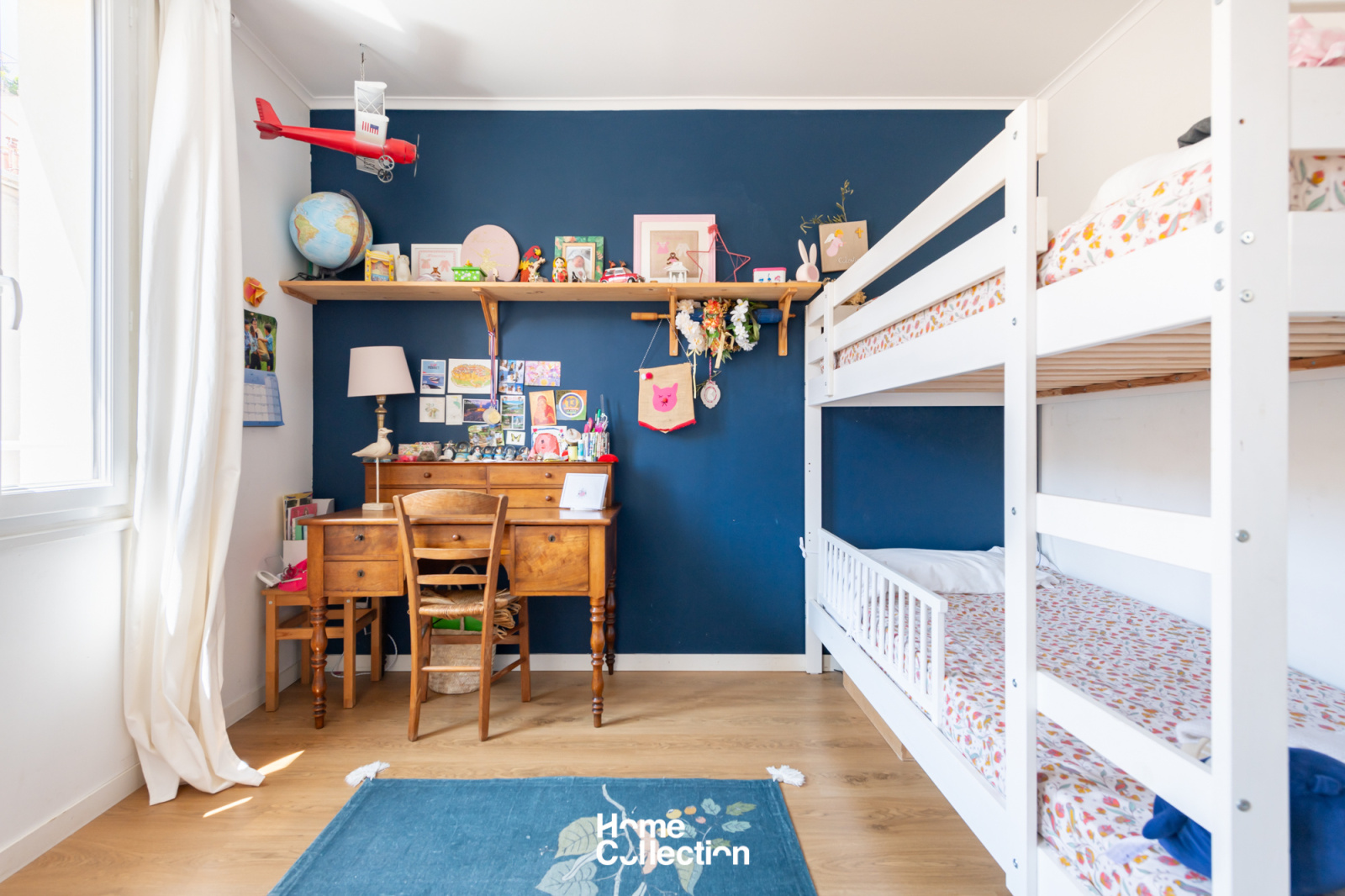 Le deuxième étage abrite trois chambres confortables et bien aménagées. Un espace commun sert actuellement de salle de jeux, mais peut facilement être transformé en bureau ou salle de bains.