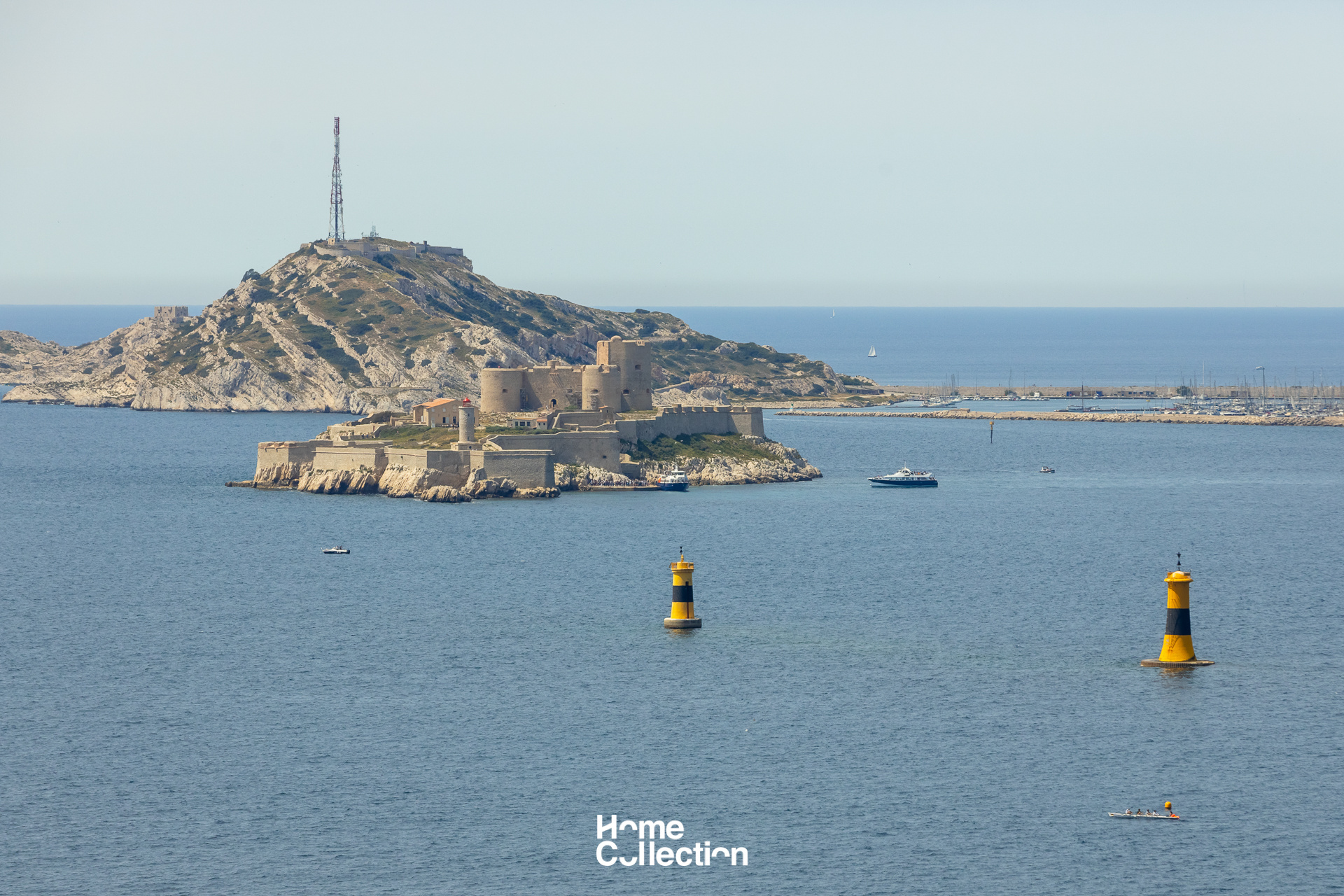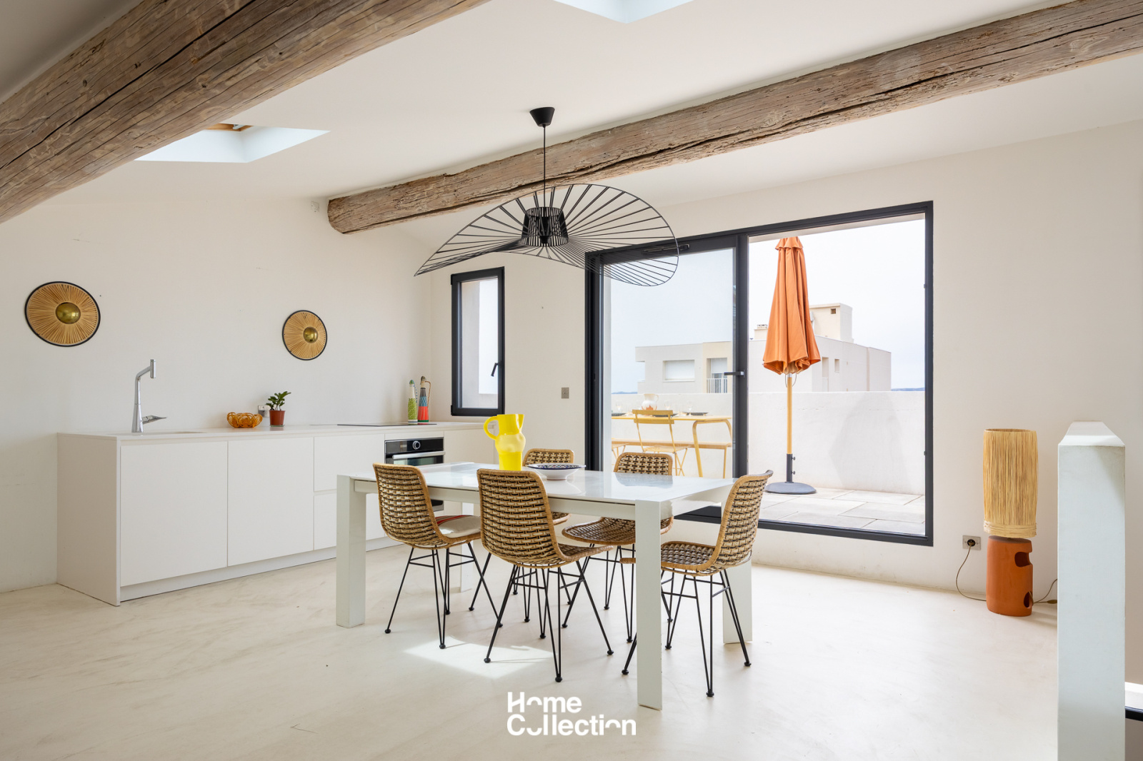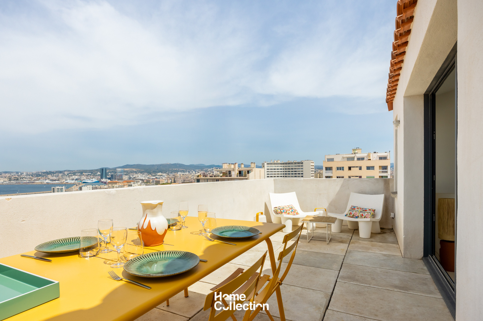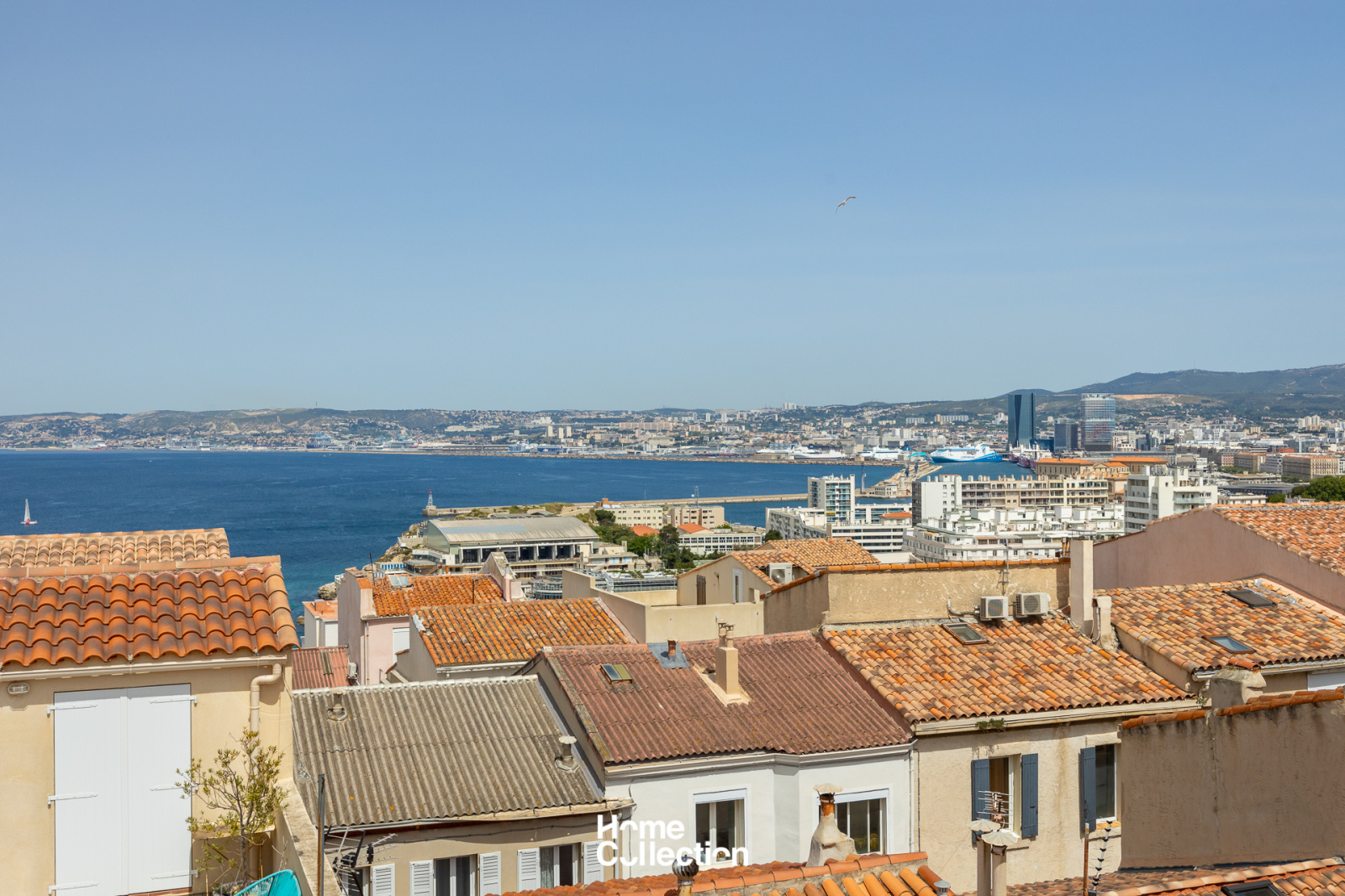 Enfin, au dernier niveau, la cuisine ouverte et la salle à manger de 27m2 s’ouvrent sur une grande terrasse panoramique, un véritable belvédère sur la rade de Marseille, les îles du Frioul et la Bonne Mère, offrant un spectacle grandiose à toute heure de la journée.