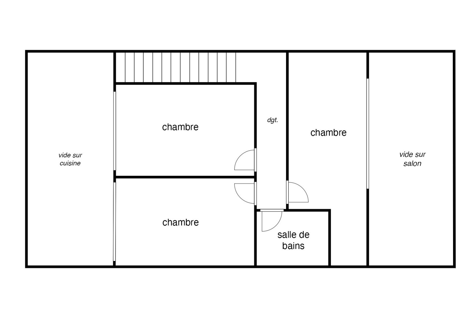 Il est agencé comme suit : au premier niveau, un séjour/cuisine et une buanderie, à l'étage, un coin nuit avec trois chambres, dont une suite parentale de 15 m² avec salle d'eau, ainsi qu'une salle de bains supplémentaire.