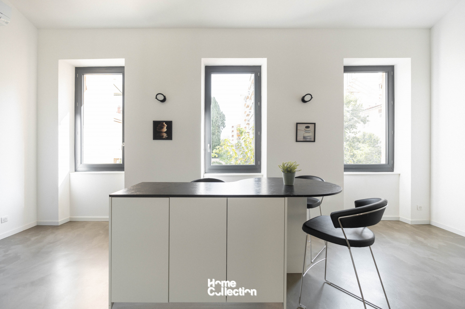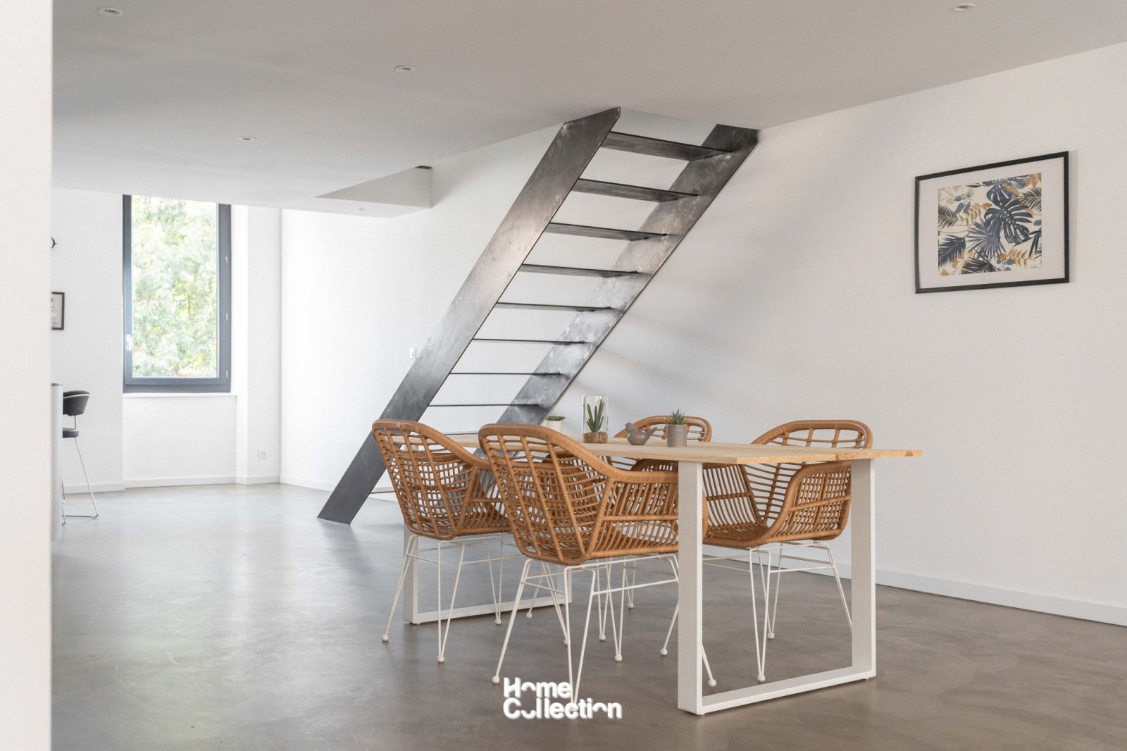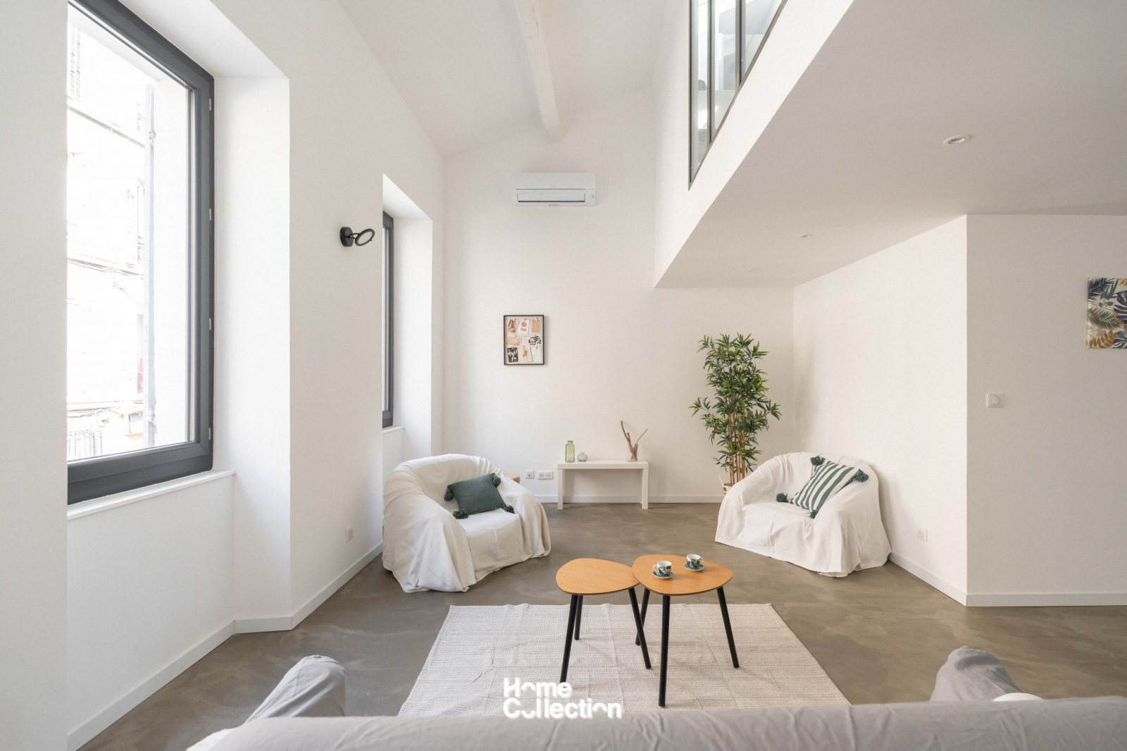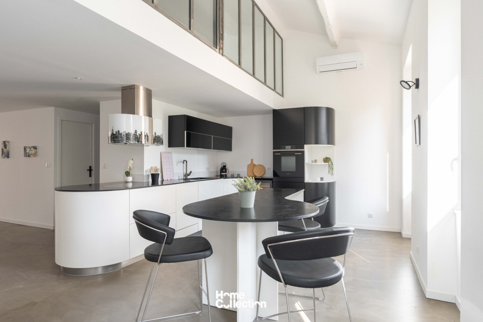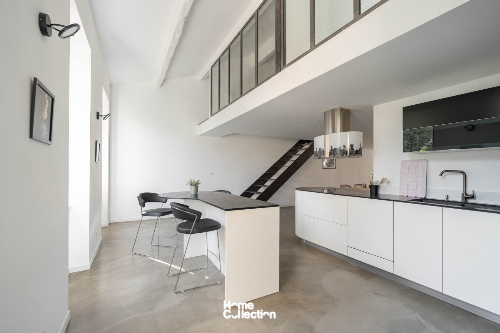 Vous apprécierez la pièce à vivre traversante de 73 m², parfaite pour accueillir vos proches. Parmi les prestations de qualité, vous trouverez du béton ciré, des verrières d'atelier, du double vitrage, la climatisation, ainsi qu'une cuisine entièrement équipée.