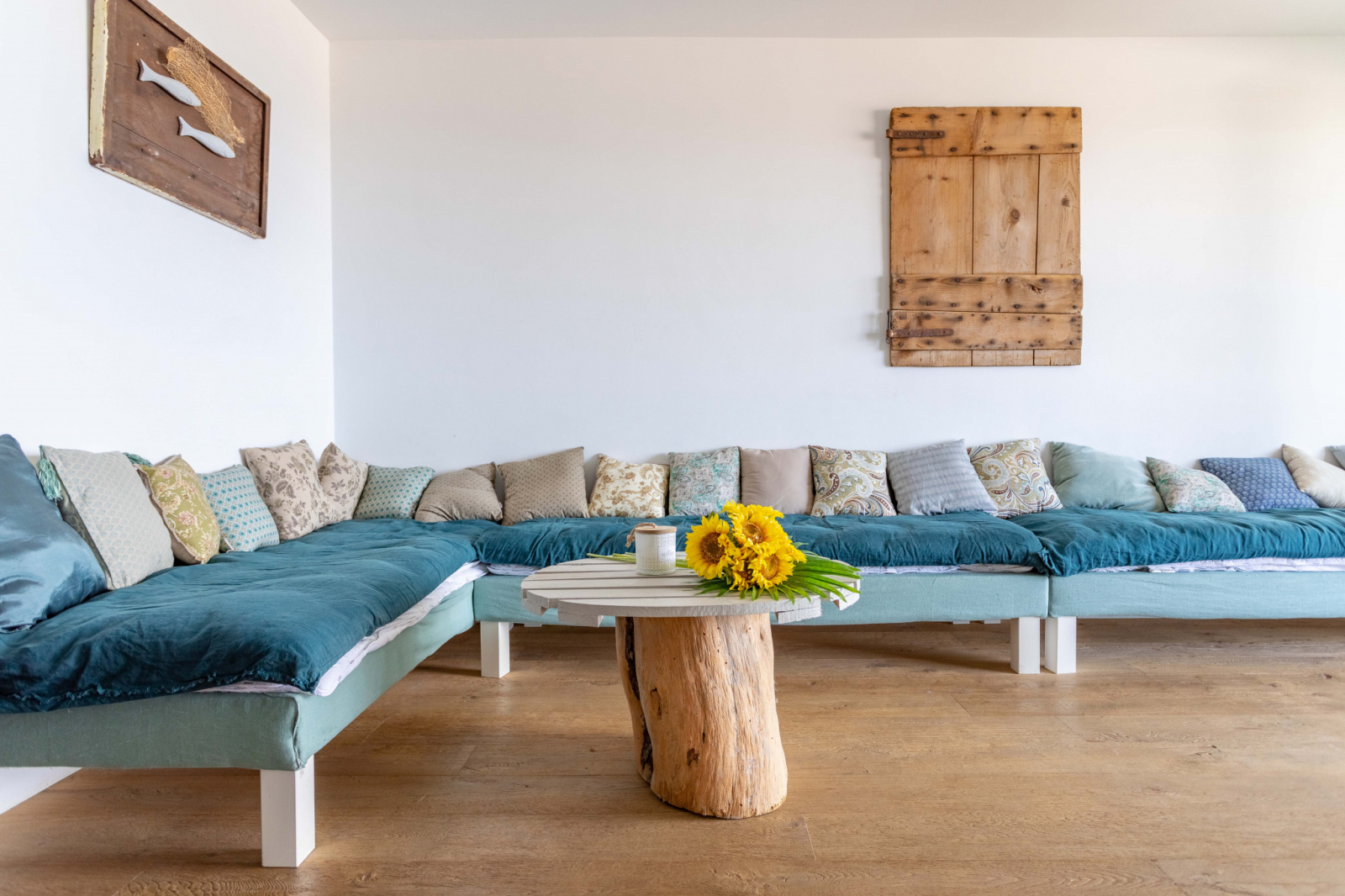 La pièce de vie de 27m2 accueille une cuisine intégralement équipée qui se prolonge par une terrasse en bois exotique laquelle permet de profiter des couchers de soleil. Côté soleil levant, deux chambres ainsi qu’une salle d’eau avec WC complètent ce premier espace.