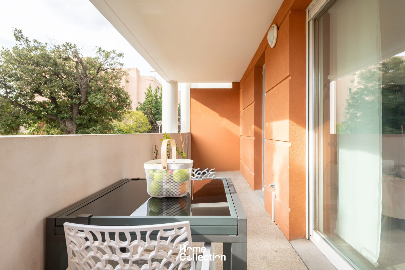 Cet appartement se trouve au calme absolu en rez-de-chaussée surélevé d'une résidence récente et sécurisée.
