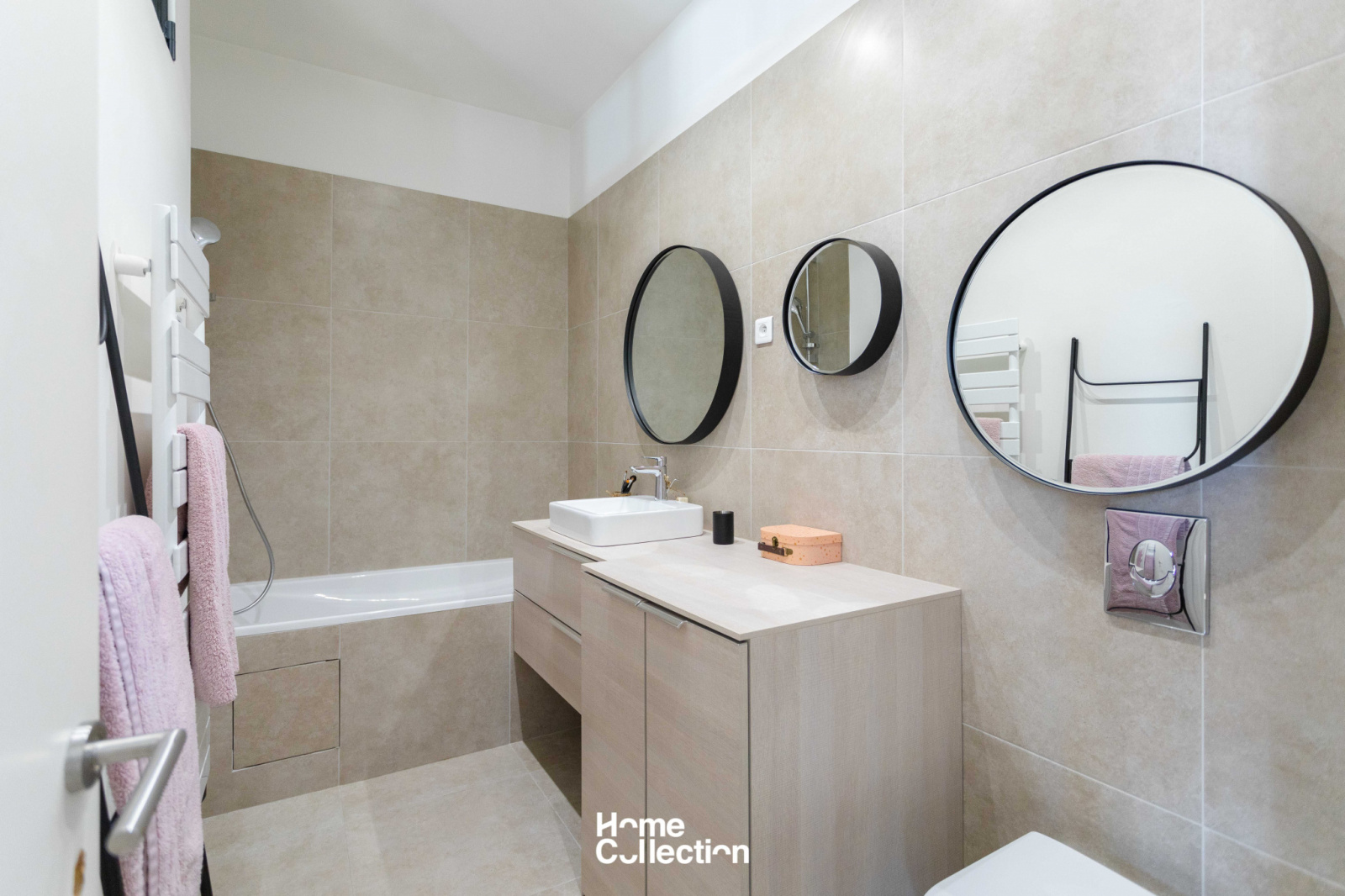 L'appartement dispose d'une entrée, d'un séjour avec cuisine américaine équipée, d'une chambre avec dressing ainsi que d'une salle de bains avec toilettes suspendu.