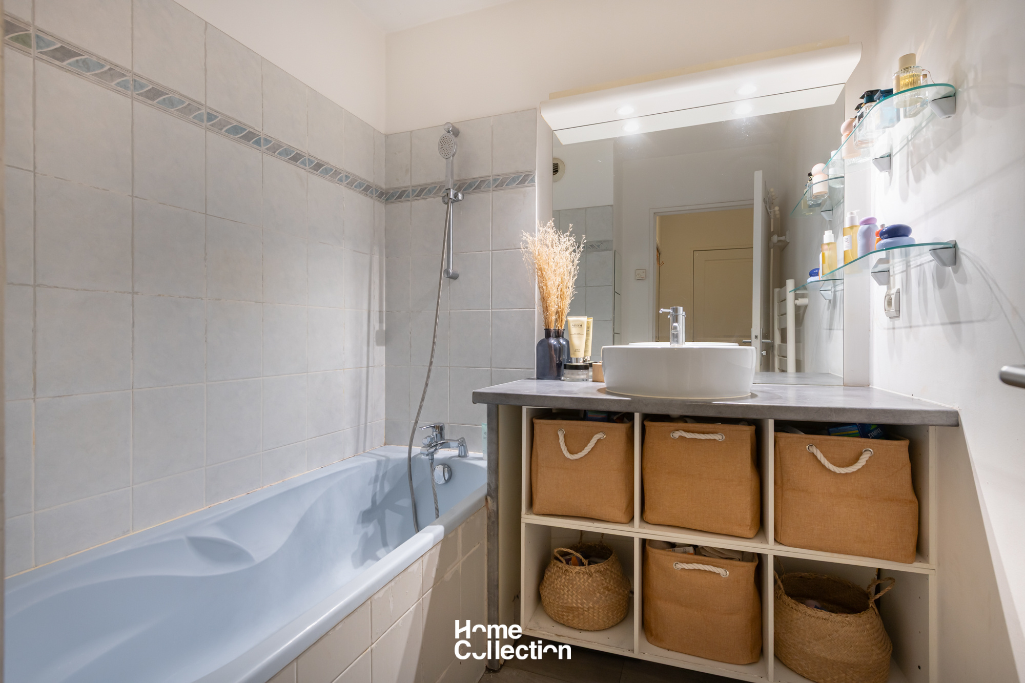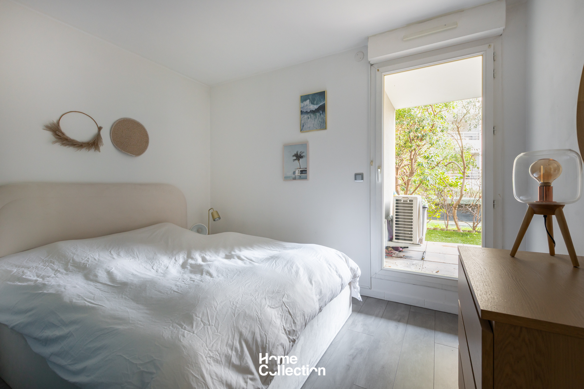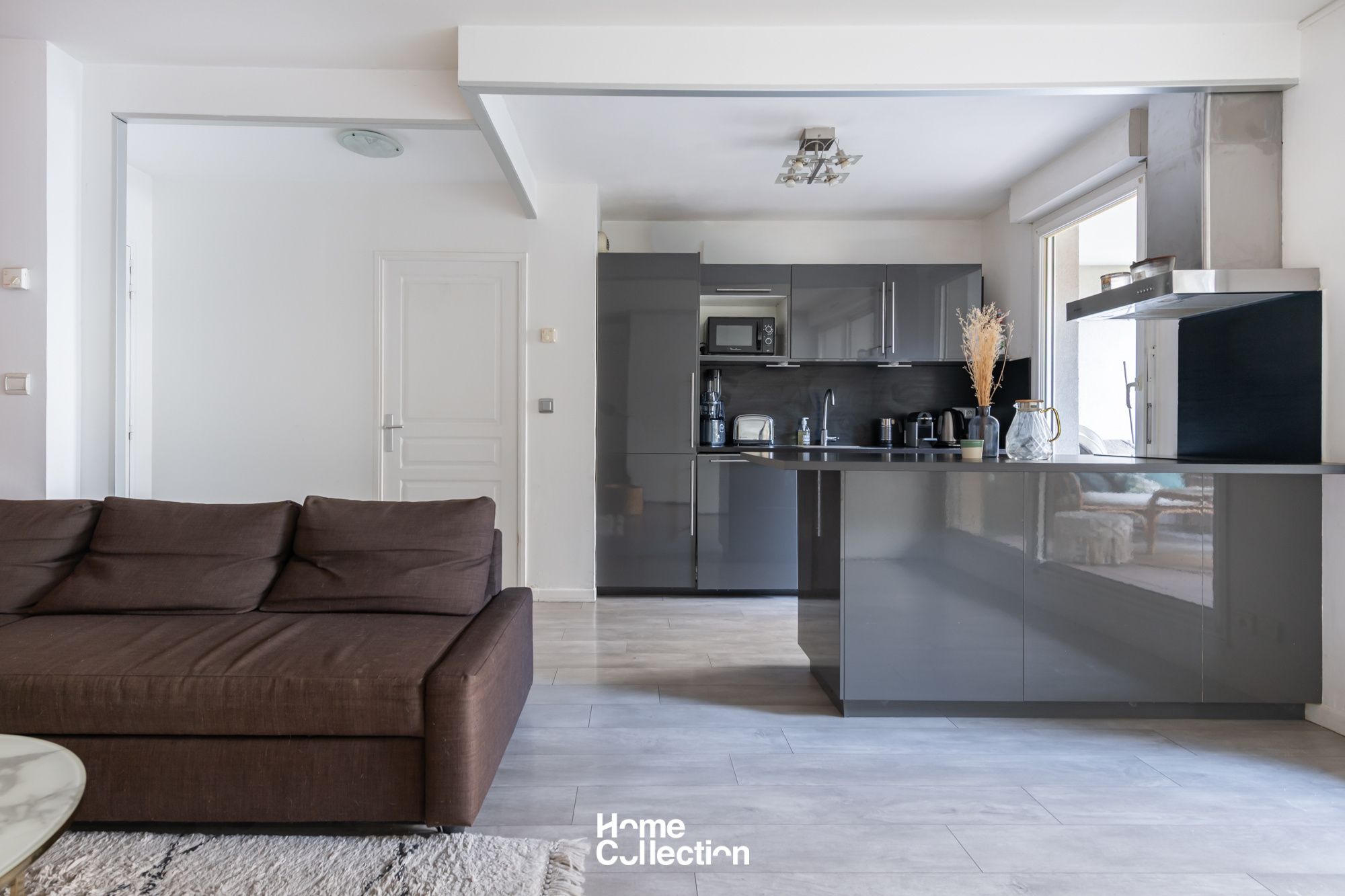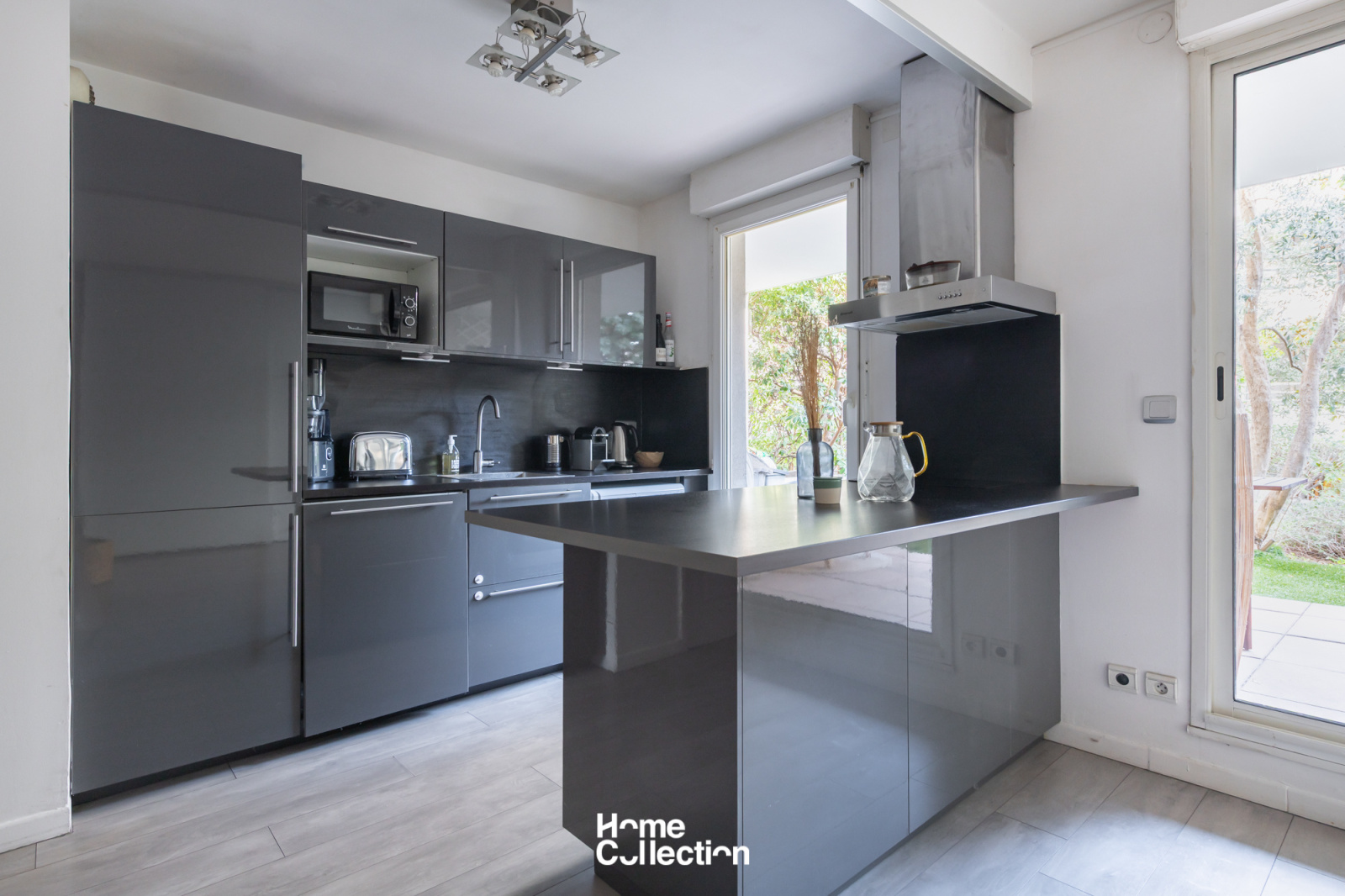 L’appartement se compose d’une entrée, d’une cuisine équipée ouverte sur le séjour. De grandes baies vitrées prolongent naturellement les espaces de vie vers le jardin, offrant une vraie continuité intérieur / extérieur.