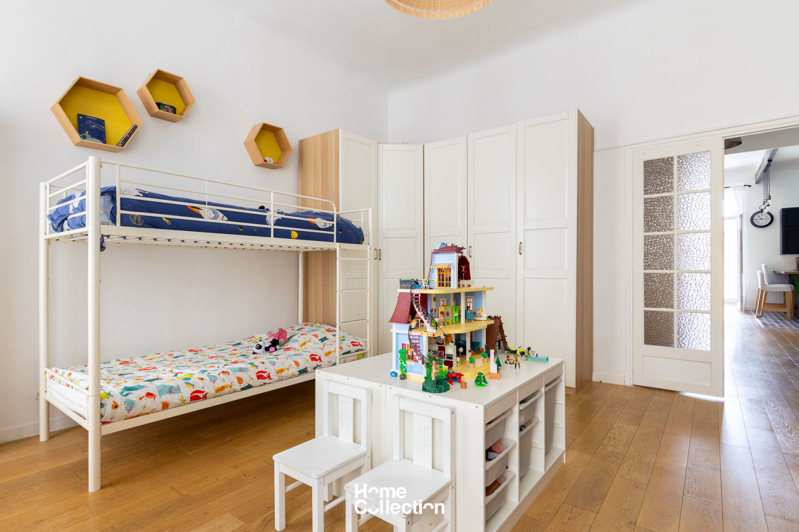 Cet appartement se distingue par ses prestations de qualité, telles que le parquet, la climatisation, le double vitrage, et une hauteur sous plafond de 3,35 mètres, assurant un confort optimal et une sensation d'espace remarquable.