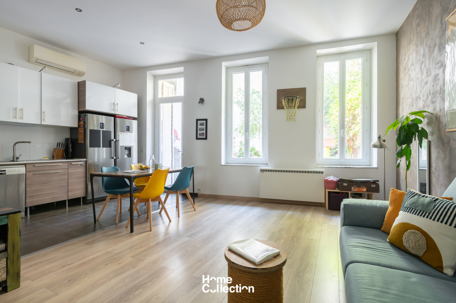 Cet appartement combine le charme de l’ancien avec sa belle hauteur sous plafond ainsi que le confort moderne grâce à la climatisation et au double vitrage.