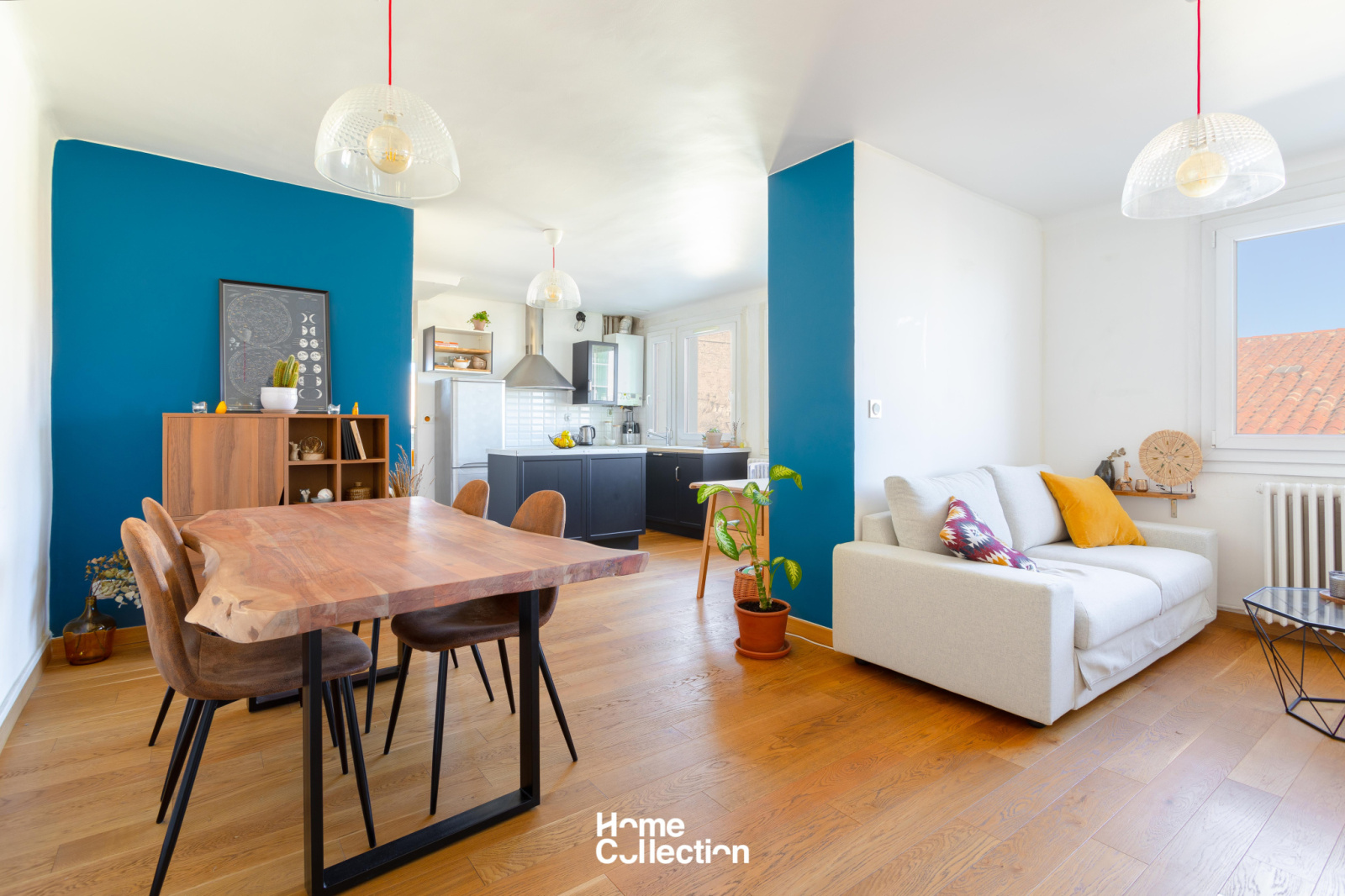 Il comprend une belle pièce à vivre disposant d'un coin séjour, d'une salle à manger, d'un espace bureau ainsi que d'une cuisine américaine. Le tout bénéficiant d'une très belle lumière grace à ses nombreuses fénêtres.