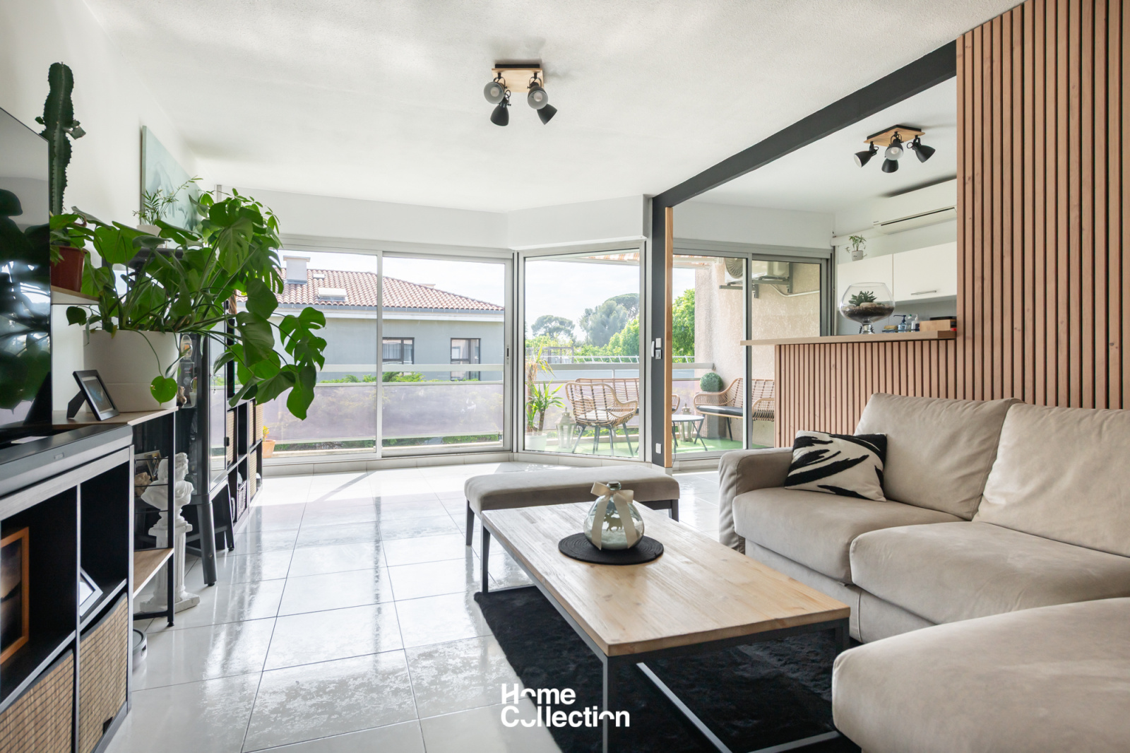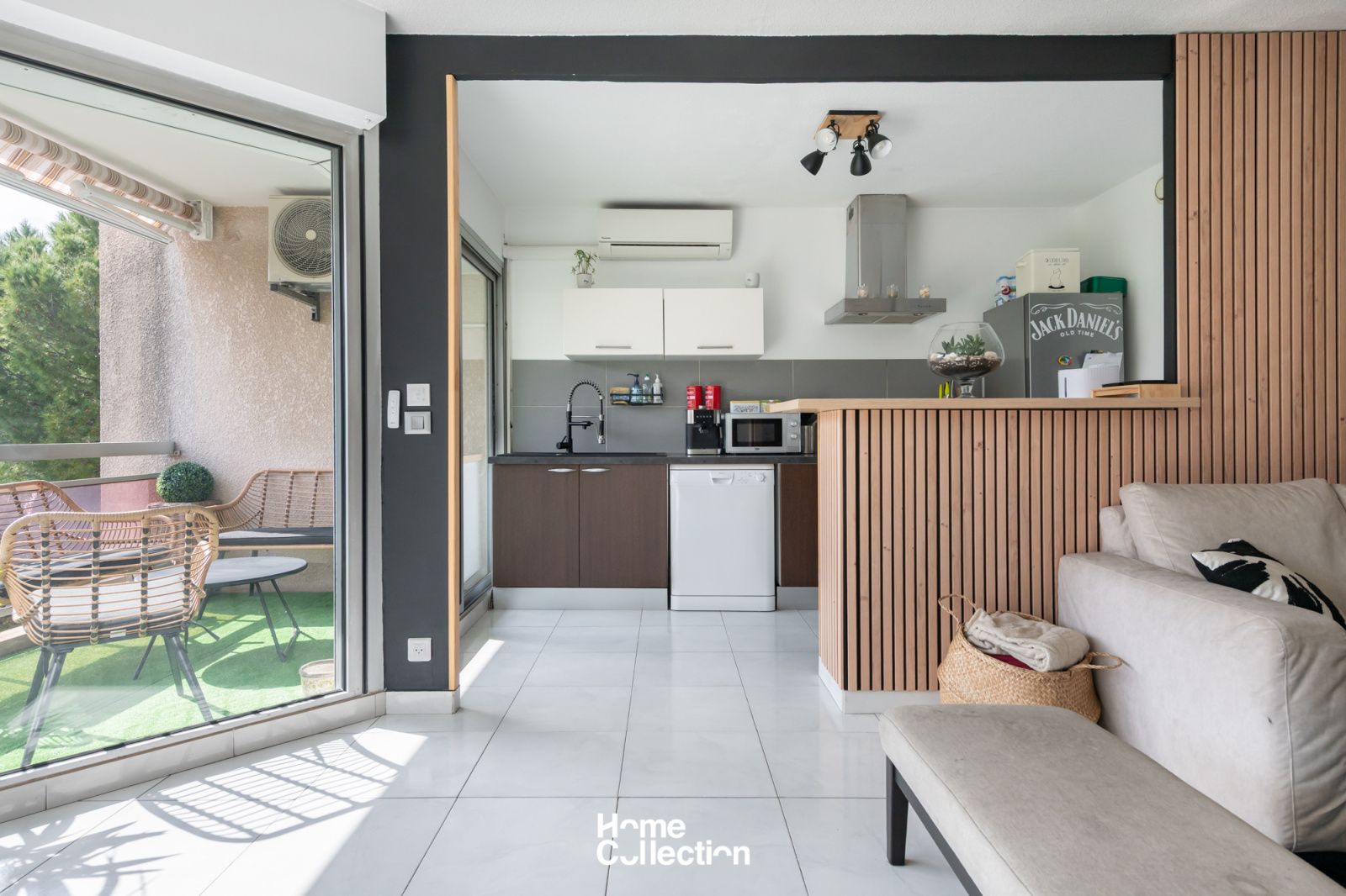 Ce bien traversant s’ouvre sur un séjour convivial, baigné de lumière, avec une cuisine semi-ouverte aménagée. De larges baies vitrées offrent un accès direct à la terrasse, où vous pourrez aisément installer un salon de jardin. Le coin nuit se compose de deux chambres, d’une salle d’eau et de toilettes séparées.