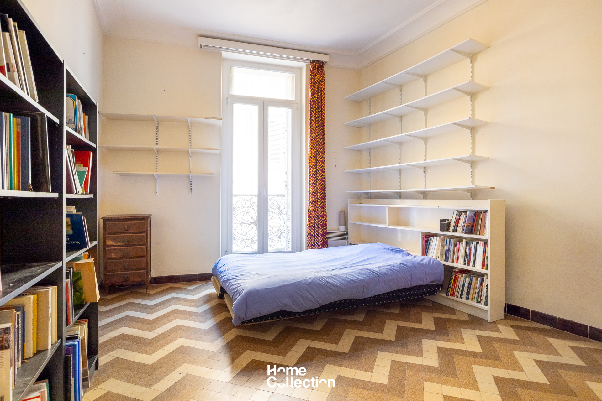 Rue d’Aubagne, découvrez au premier étage d’un immeuble bourgeois de la fin du XIXe siècle soigneusement entretenu, un appartement de caractère à restaurer.
