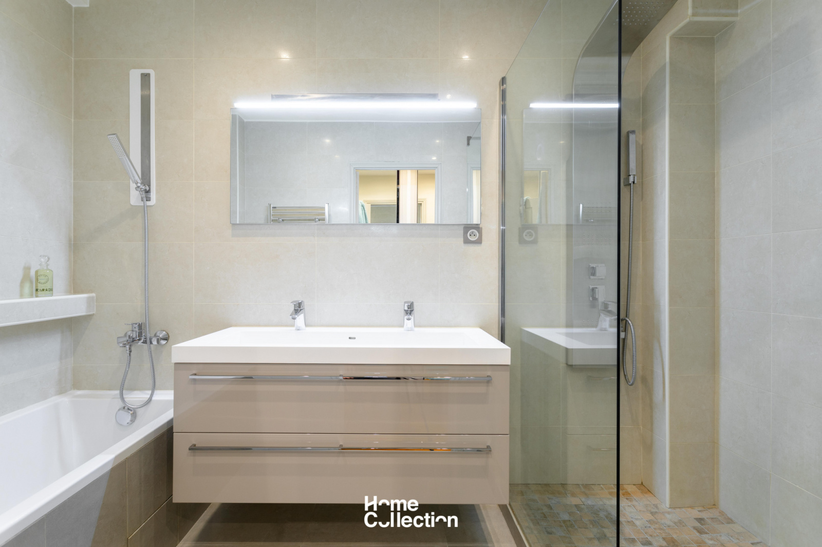 Le coin nuit comprend deux belles chambres toutes équipées de placards. Celles-ci ouvrent sur le deuxième balcon lequel permet de bénéficier de toute la quiétude du jardin intérieur de la copropriété. Une salle de bains avec douche à l'italienne et baignoire complète cette partie du bien.