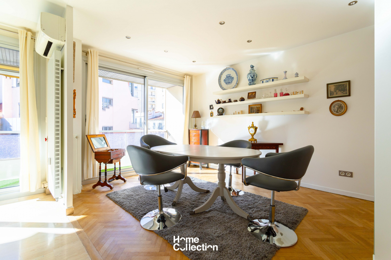 Cet appartement a été intégralement rénové avec matériaux de qualité (nombreux placards/dressings aménagés, porte blindée, climatisation réversible, baies vitrées en aluminium et volets roulants motorisés...). A noter qu'il existe une possibilité de créer une 3ème chambre à la place de la salle à manger actuelle.